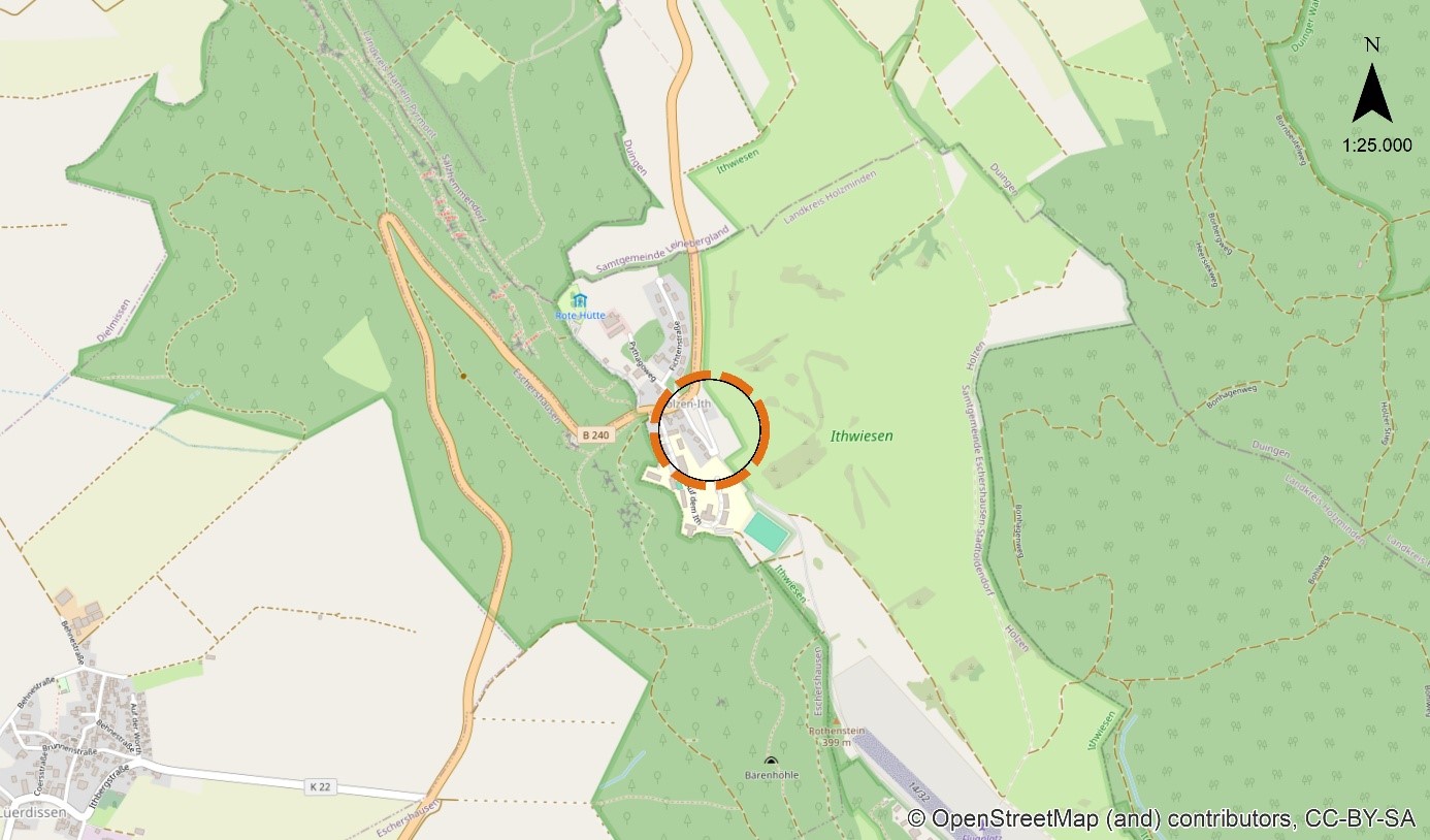 Der Geltungsbereich des Plangebiets liegt am Rande des Naturschutzgebietes „Ithwiesen“, südlich der Bundesstraße 240 auf dem Höhenzug des Ith, einer landschaftlich reizvollen Region, die durch ihre naturnahe Umgebung geprägt ist. Im Osten grenzt direkt das Naturschutzgebiet an, während im Westen die Wohnsiedlung der Segelflugstraße angrenzt, wodurch eine Verbindung zwischen Naturraum und bestehender Bebauung gegeben ist.
