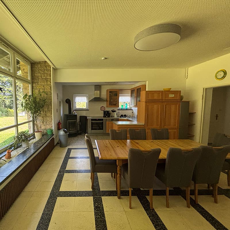 Unsere rustikalen, barrierearmen Zimmer mit eigenem Bad inklusive Dusche, eine gemütliche Gemeinschaftsküche mit Kamin und ein weitläufiges Außengelände mit Grillplatz machen deinen Aufenthalt unkompliziert und besonders. Ob du mit deiner Gruppe intensive Seminare erleben willst oder mit Freund*innen ein Wochenende voller Bewegung und Begegnung planst – das Ithhostel bietet dir Raum, Ruhe und den perfekten Ausgangspunkt.